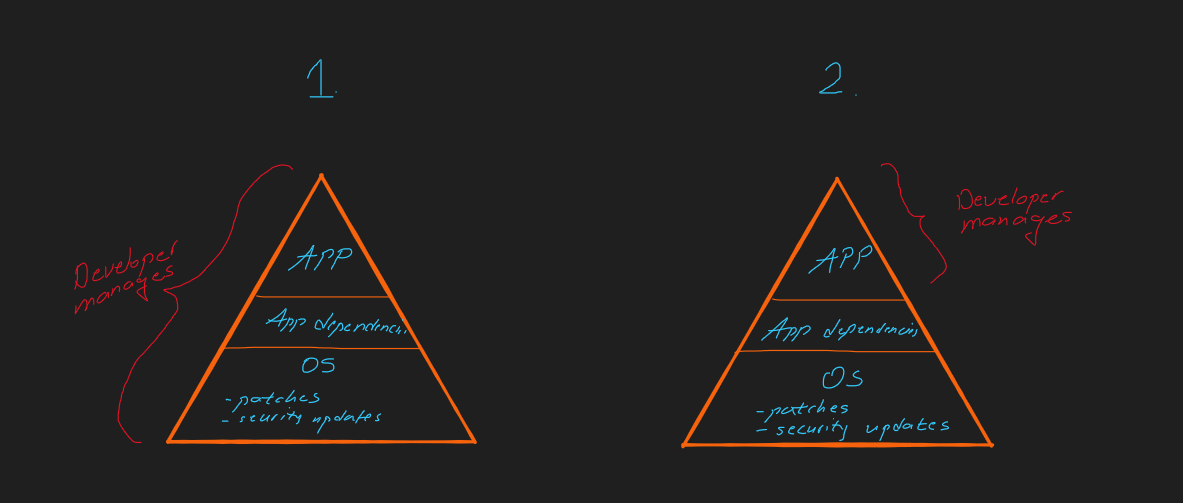 - By choosing the serverless path, the developer delegates the task of creating and managing the server to the cloud provider (i.e Azure) and only deals with creating and maintaining the code itself.